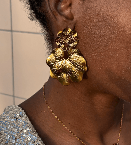 Inspirées par la délicatesse de la nature, ces boucles d'oreilles imposantes habillent le visage avec classe et modernité.